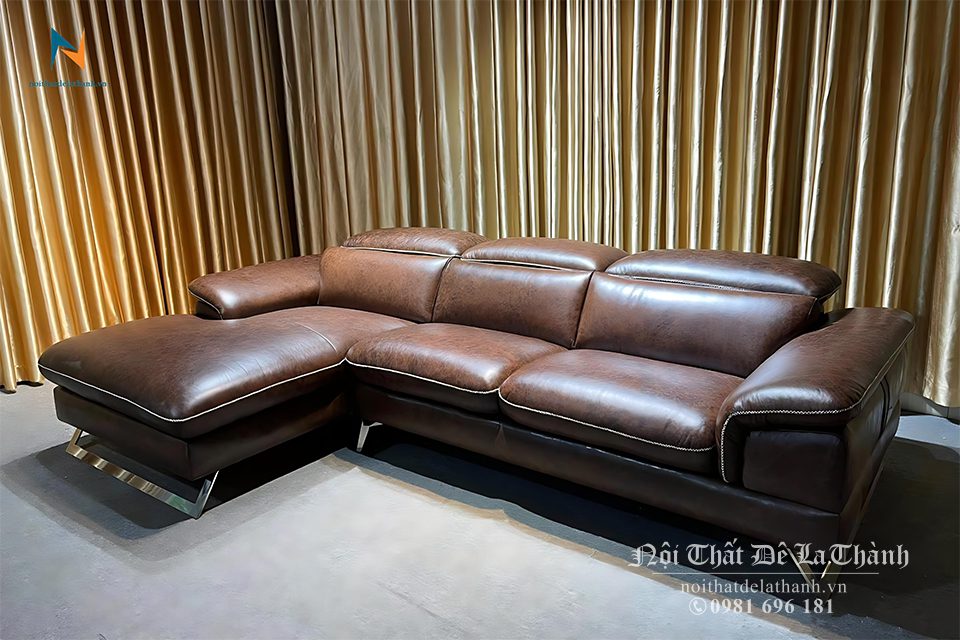 - Bộ bàn ghế sofa có chân đế thấp, phần ghế theo kiểu chữ L giúp tiết kiệm không gian bày trí, tối ưu hóa công năng sử dụng. Kiểu dáng đẹp kết hợp cùng sắc nâu sang trọng phù hợp với mọi phong cách thiết kế nội thất từ cổ điển tới hiện đại.