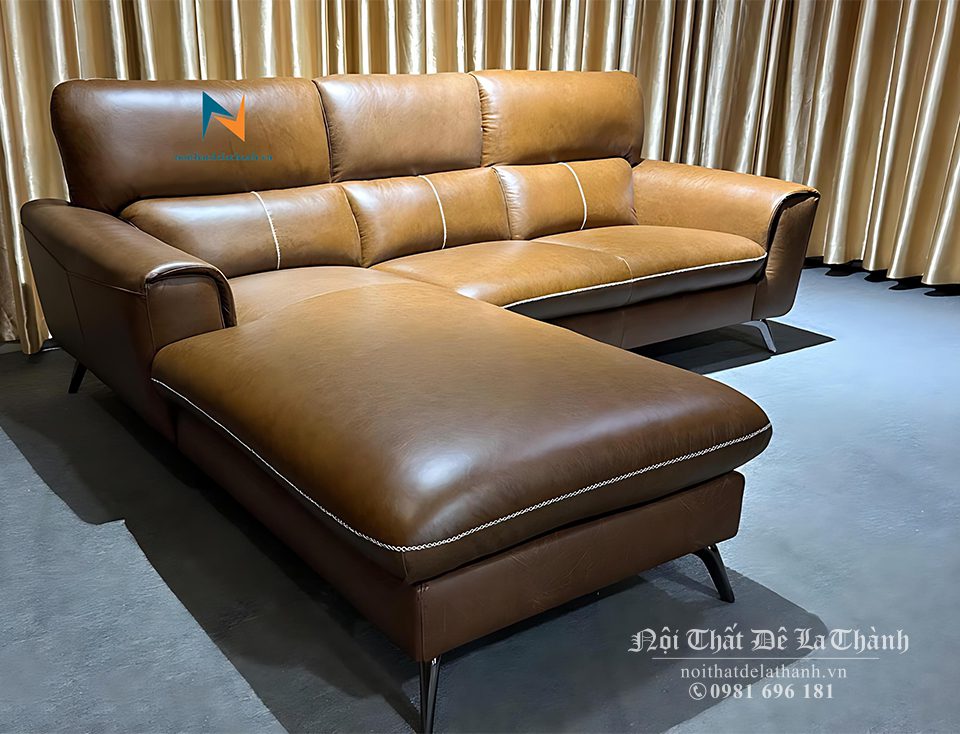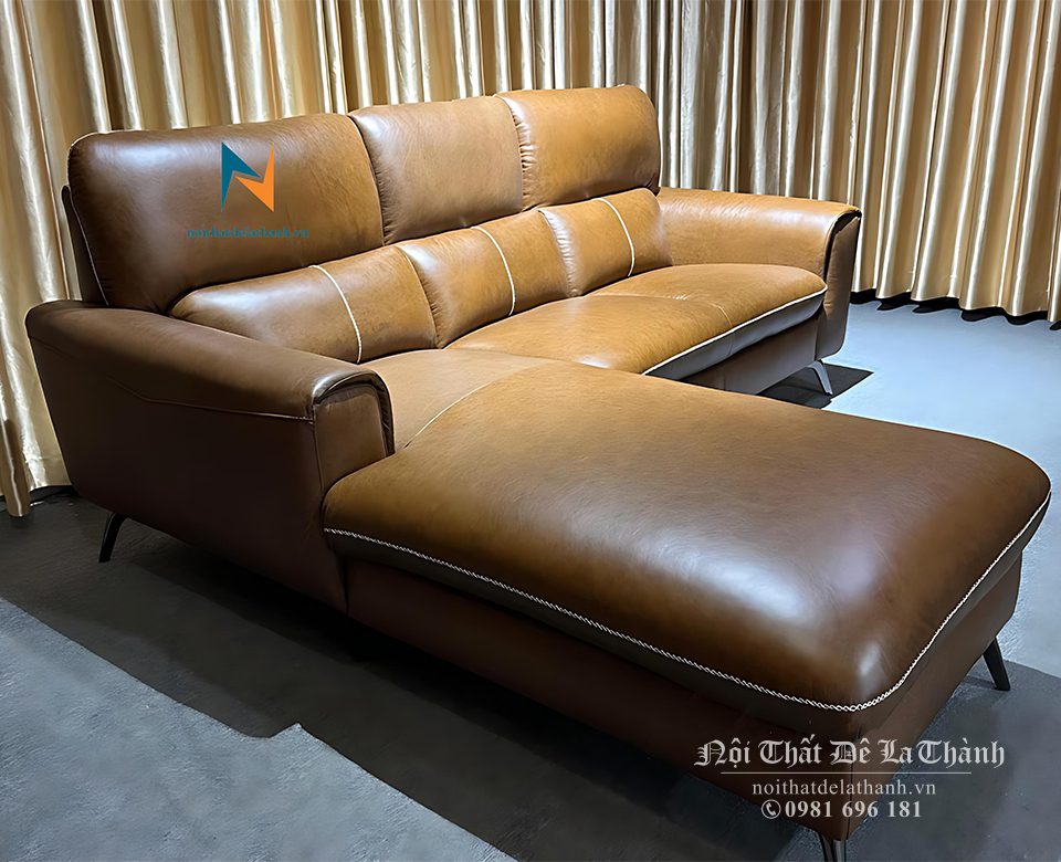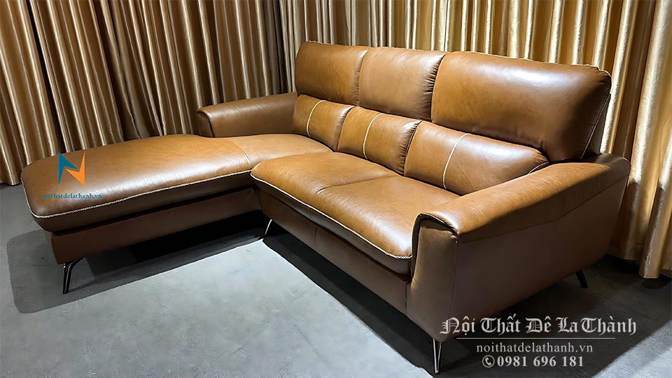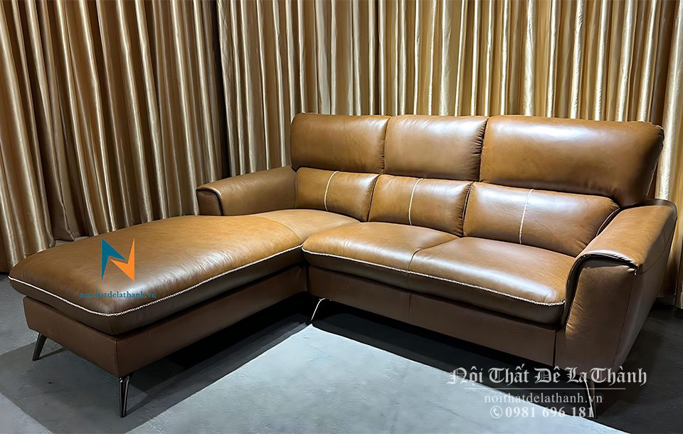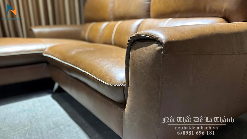 Màu nâu trẻ trung và sang trọng, kiểu dáng chữ U hiện đại với cách tạo hình khối tinh tế, kết hợp với những đường may đẹp và chuẩn chỉnh đến từng chi tiết mang đến vẻ đẹp sang trọng, ấn tượng cho bộ sofa da bò Ý nhập khẩu.
